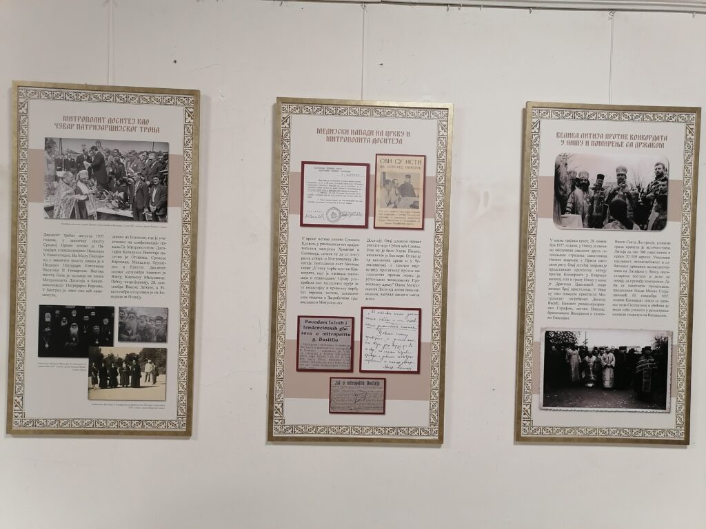 „Један од оних који су оставили духовни неизбрисив траг у нашем народу је и Свети исповедник Доситеј Васић. Његово дело, његова трагична кончина и све оно што је остало, чак и у нашим крајевима, као материјално историјско сведочанство његовог архипастирског службовања, живота и рада, је нешто што и данас оставља и трајно ће оставити последице на духовни живот, на живот цркве на просвећивању, на бризи и на нези нашег народа. Господин градоначелник поменуо је да је Свети Сава био оснивач првих српских болница – основао их је и Свети Доситеј, првих српских школа, универзитета и сиротишта – основао их је и Свети Доситеј. Све оно што је било човекољубиво, милосрдно, доброхвално и љубави достојно везано је за лик и дело једног човека о коме не знамо пуно“, рекао је један од аутора изложбе свештеник Далибор Мидић.