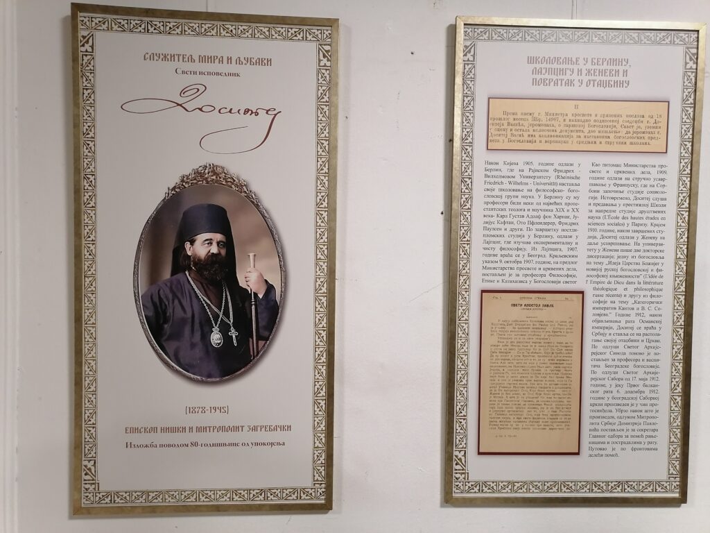 „Свети владика Доситеј нишки је прву цркву коју је као епископ осветио на простору Врања. То је црква у Бресници. Затим је осветио цркву у Белишеву, Власу и у Горњој Љубати. Тако да је он заиста може се казати и утемељивач Епархије врањске. Поред тога што је страдао у Загребу, доласком окупационих власти у Ниш 1915. године, бугарске власти су га ухапсиле и довеле у логор у Бугарској и био је тамо три године. Тако да је он два пута страдао. Што је најважније, какву је он љубав и осећај имао и према онима који су га мучили и тиме био подражатељ Господа Нашега Исуса Христа. Када је 1921. године био велики земљотрес у Бугарској, он као нишки епископ, после три године када је дошао из заточеништва, он је скупљао помоћ и возио у Бугарску да помогне намученом народу Бугарскоме. Таква је то личност била и тако је имао јеванђељски начин размишљања“, рекао је митрополит врањски господин Пахомије.