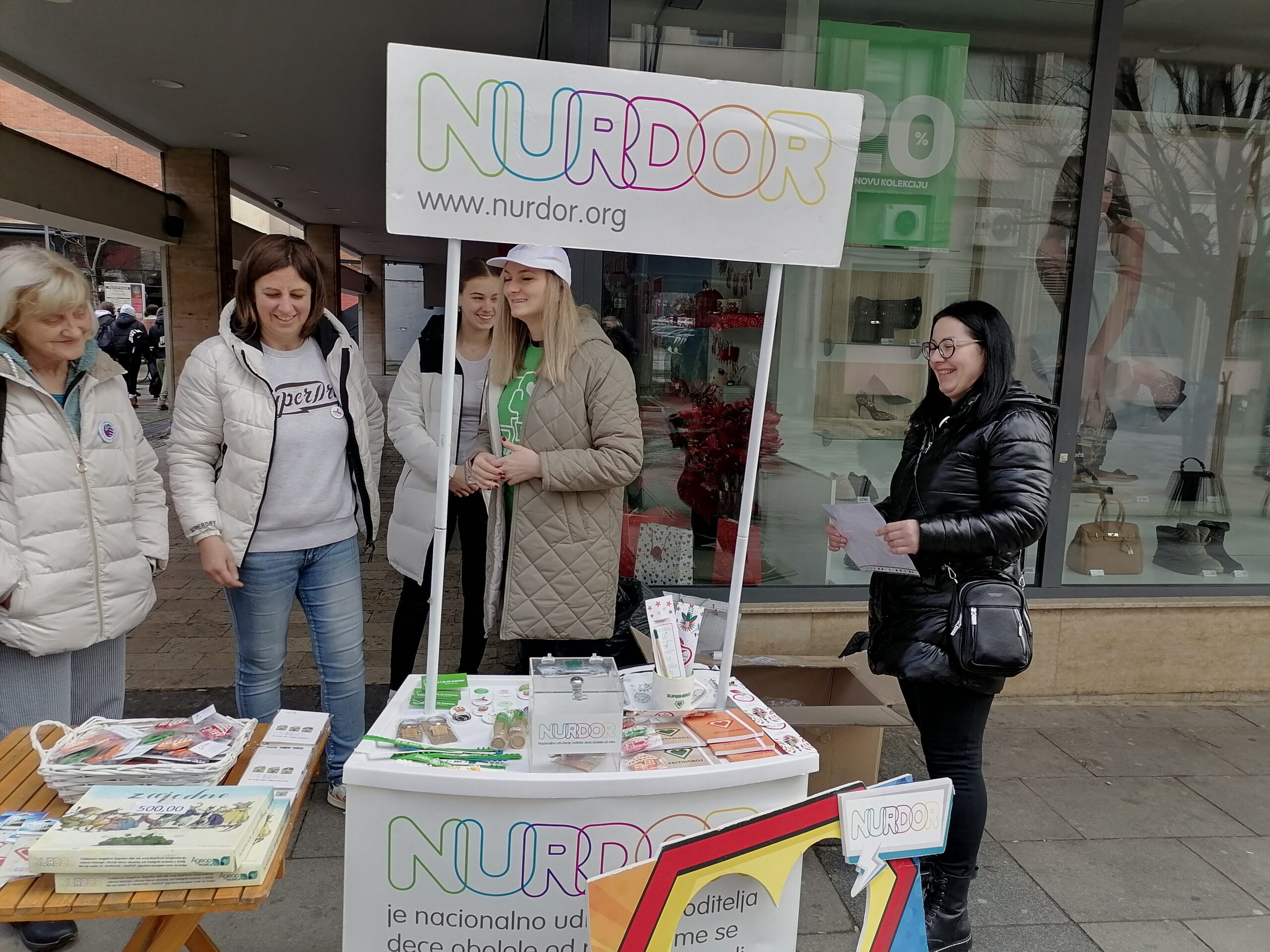 Национално удружење родитеља деце оболеле од рака НУРДОР обележава Светски дан деце оболеле од рака, низом активности, сусрета и акција широм Србије. Један од градова у којима се овај дан обележава сваке године па је тако било и ове јесте Врање. Волонтери НУРДОР-а у центру Врања организовали су акцију на којој су грађани могли да пруже подршку малишанима оболелим од ове опаке болести куповином сувенира и слаткиша или једноставно донирањем новца. Средства су намењени подршци лечењу.