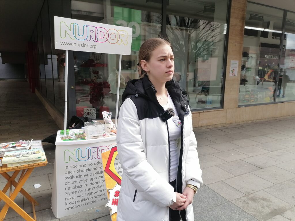 „Надам се да ће данашњој акцији бити што већи одзив јер нам стварно подршка пуно значи. Нисмо ни свесни колико кроз ситнице и кроз мале ствари помажемо деци оболелој од малигних болести и њиховим родитељима“, поручила је волонтерка НУРДОР-а Александра Јоксимовић.