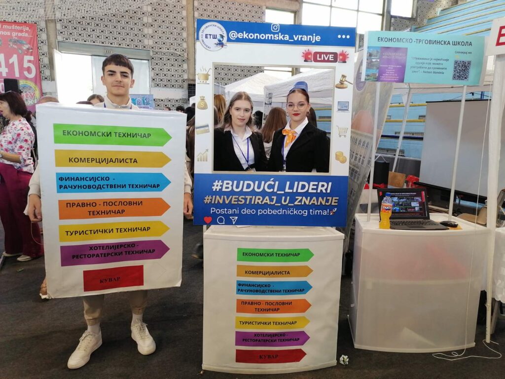 Економско – трговинска школа имала је врло креативан штанд ,који су у духу својих образовних смерова припремили професори и ученици, те је привукла велико интересовање посетилаца. Ова школа нуди чак седам образовних профила.