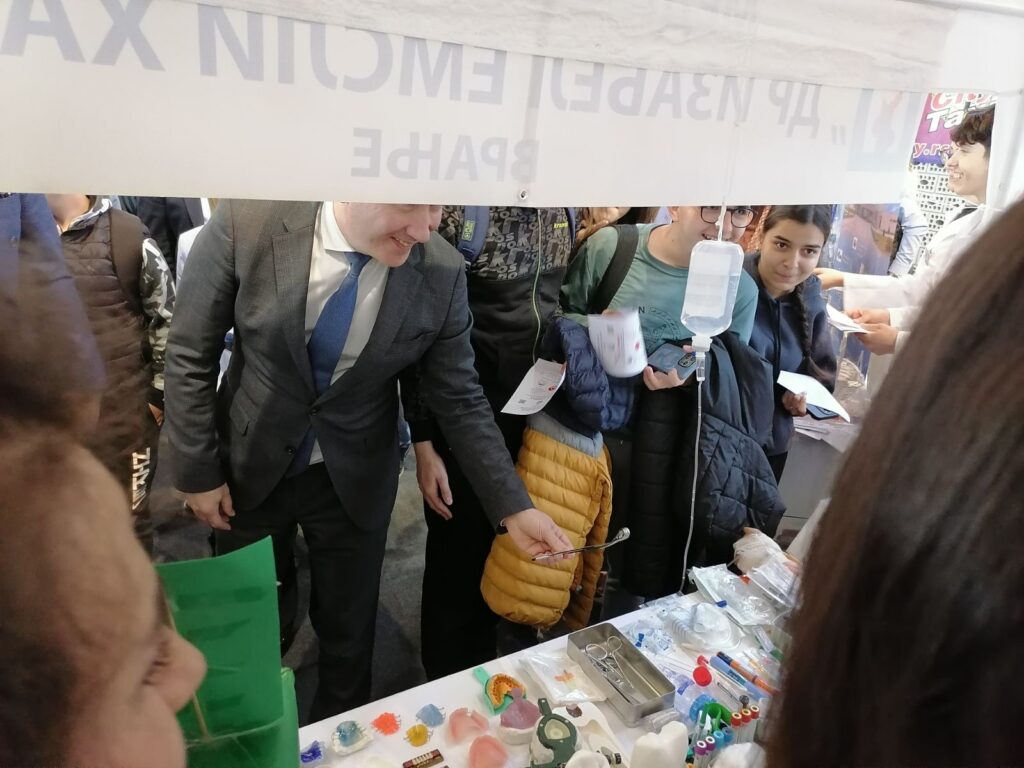 Учесници су де потрудили да се представе у најбољем светлу и привуку будуће ђаке, студенте и кориснике. Ми смо разговарали са представницима Медицинске школе „Др Изабел Емсли Хатон“ и Гимназије „Бора Станковић“, које важе за две најтраженије средње школе у Врању.
