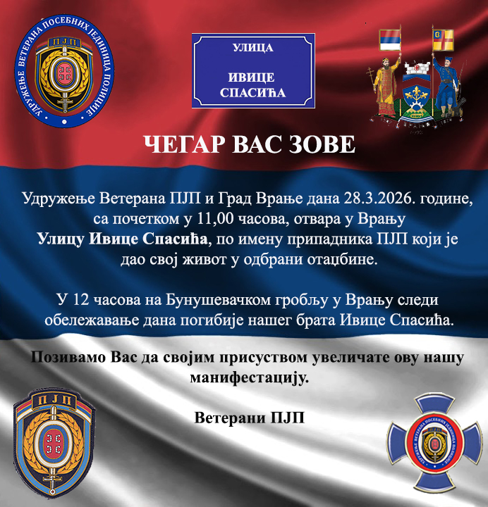 Из Удружења ветерана посебних јединица полиције у Врању позивају суграђане да се придруже и својим присуством увеличају овај догађај.