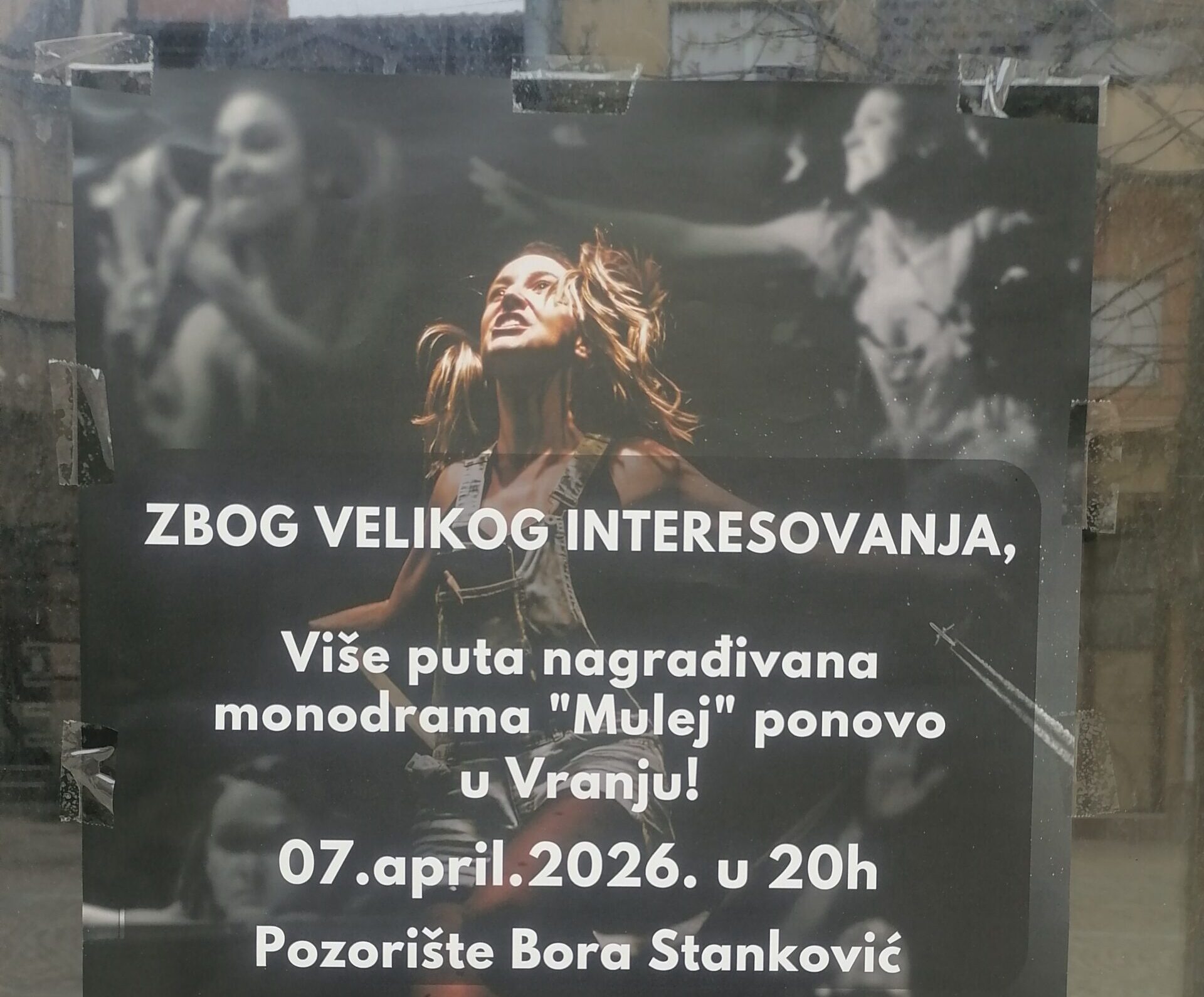 У Позоришту „Бора Станковић“ у Врању у уторак 7. априла са почетком у 20 сати, биће изведена вишеструко награђивана монодрама „Мулеј“, наше суграђанке, глумице Анице Петровић.